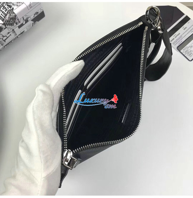 [스페셜오더]PRADA-2NH009 프라다 블랙/플래티넘 사피아노 가죽 파우치
