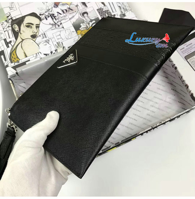 [스페셜오더]PRADA-2NH005 프라다 블랙 사피아노 가죽 파우치