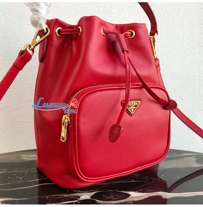 [스페셜오더]PRADA-1BH038 프라다 레드 송아지 가죽 버킷백