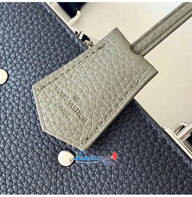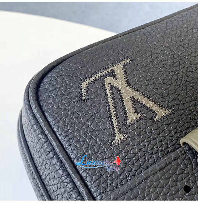 카키 색상의 LV 디테일이 있는 블랙 토뤼옹 가죽