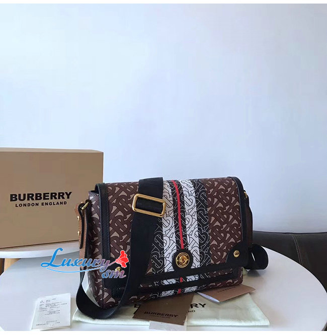 [스페셜오더]BURBERRY-80193661 버버리 모노그램 스트라이프 E-캔버스 노트 크로스바디백