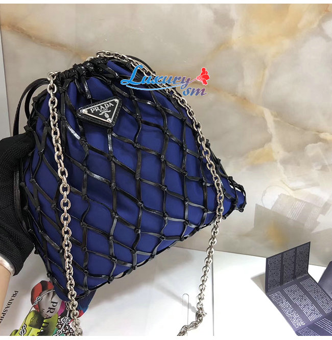 [스페셜오더]PRADA-1BC075 프라다 블루 메시 새틴 파우치