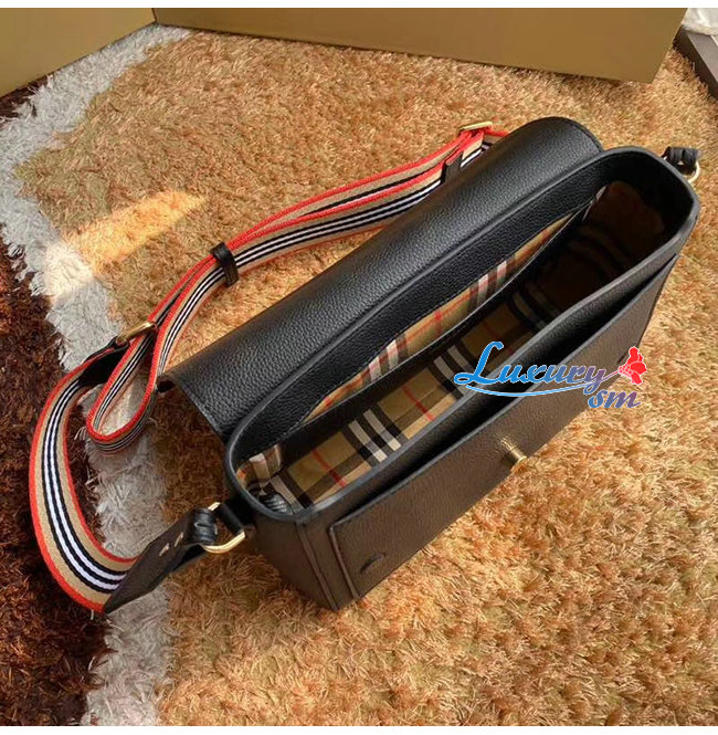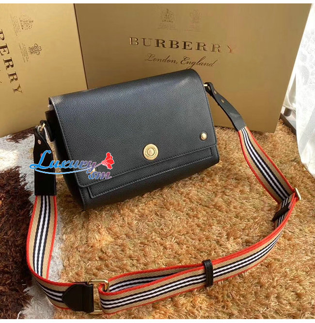 [스페셜오더]BURBERRY-80174621 버버리 블랙 송아지 가죽 노트 크로스바디백