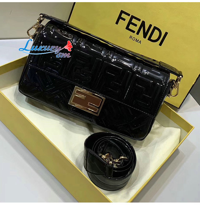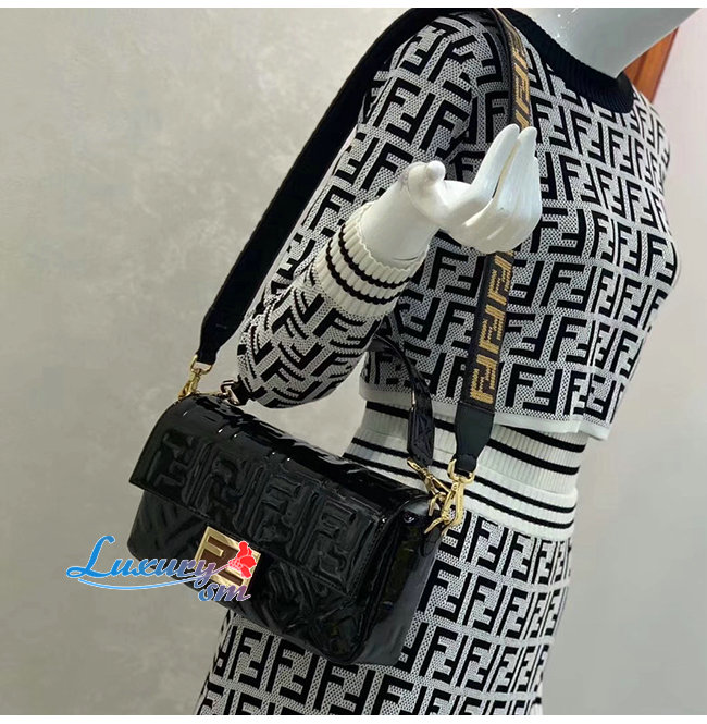 [스페셜오더]FENDI-8BR600 펜디 블랙 FF 모티프 양가죽 미디엄 바게트백