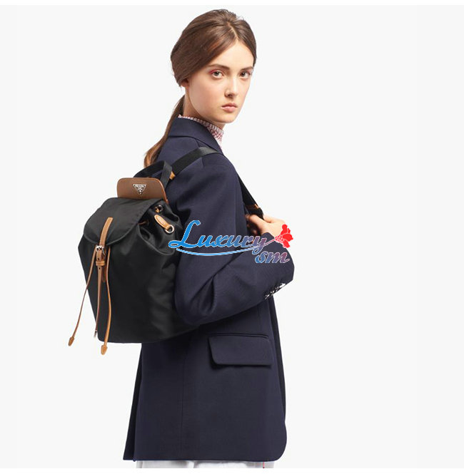 [스페셜오더]PRADA-1BZ064 프라다 블랙/캐러멜 나일론 사피아노 가죽 백팩