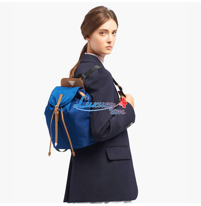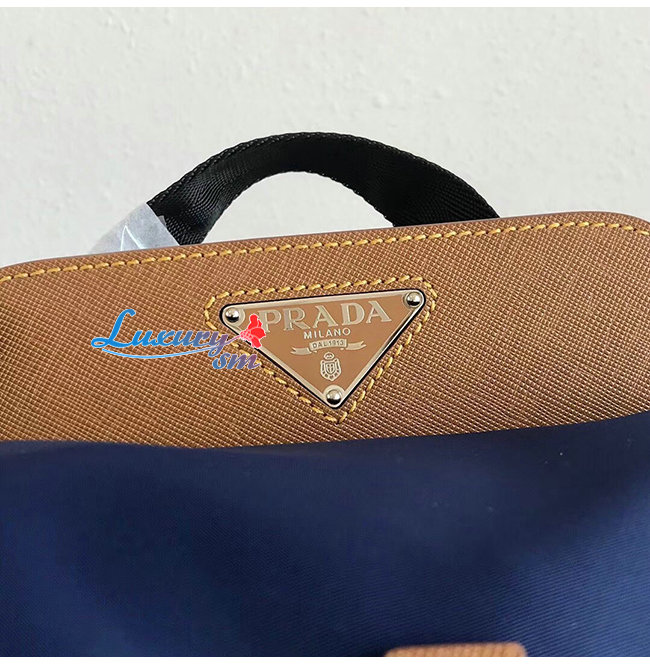 [스페셜오더]PRADA-1BZ064 프라다 블루/캐러멜 나일론 사피아노 가죽 백팩