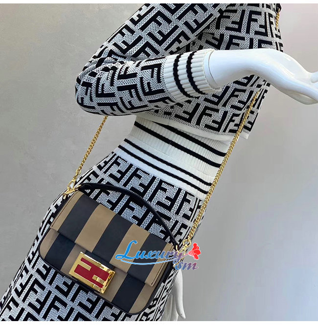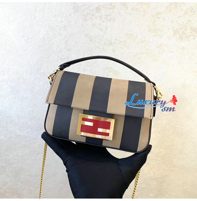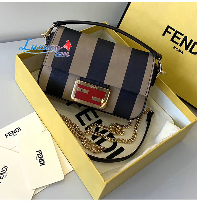 [스페셜오더]FENDI-8BS017 펜디 블랙 페이턴트 가죽 브라운/블랙 페퀸 스트라이프 양가죽 미니 바게트 가격 : 480,000원