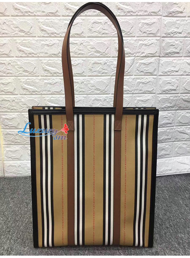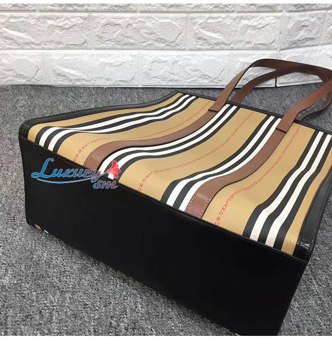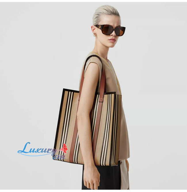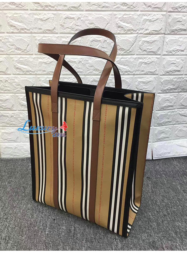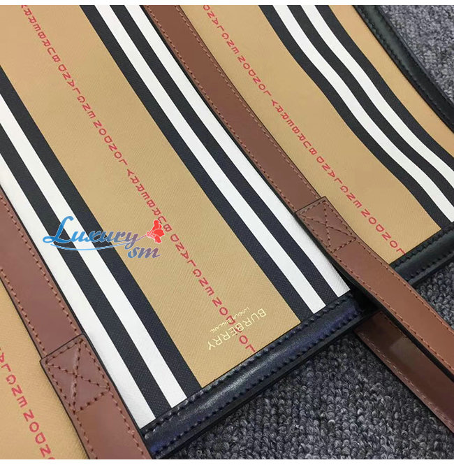 [스페셜오더]BURBERRY-80223761 버버리 로고 스트라이프 E-캔버스 포트레이트 토트백