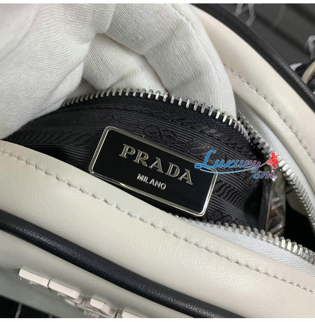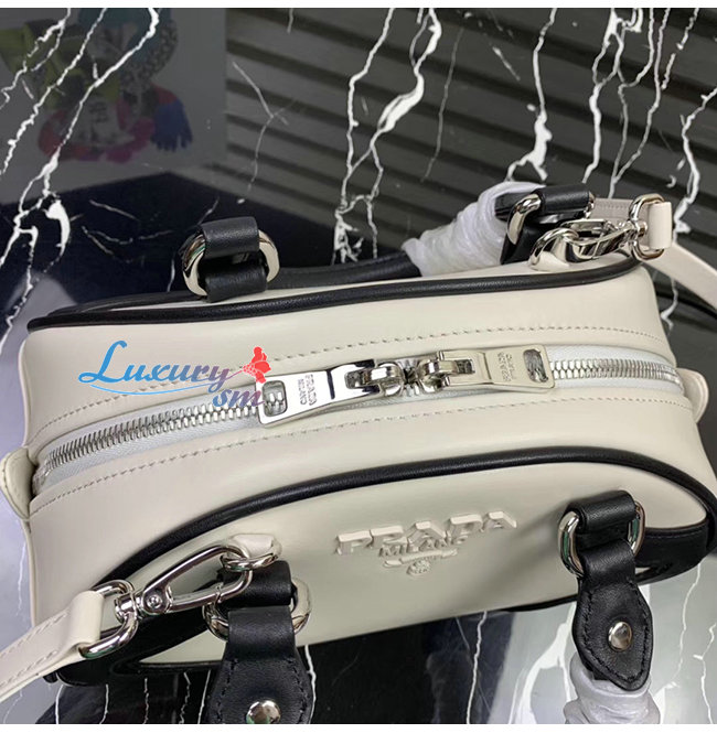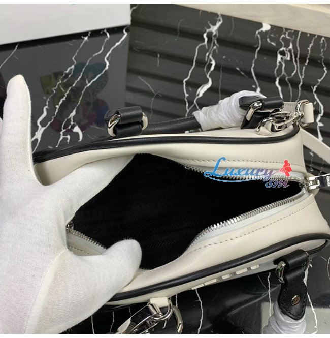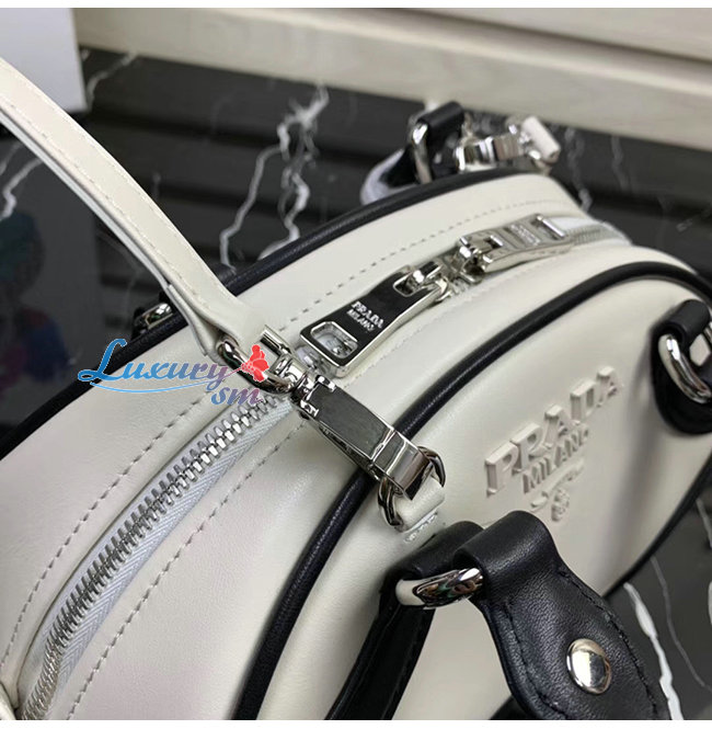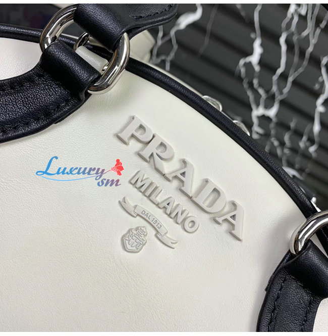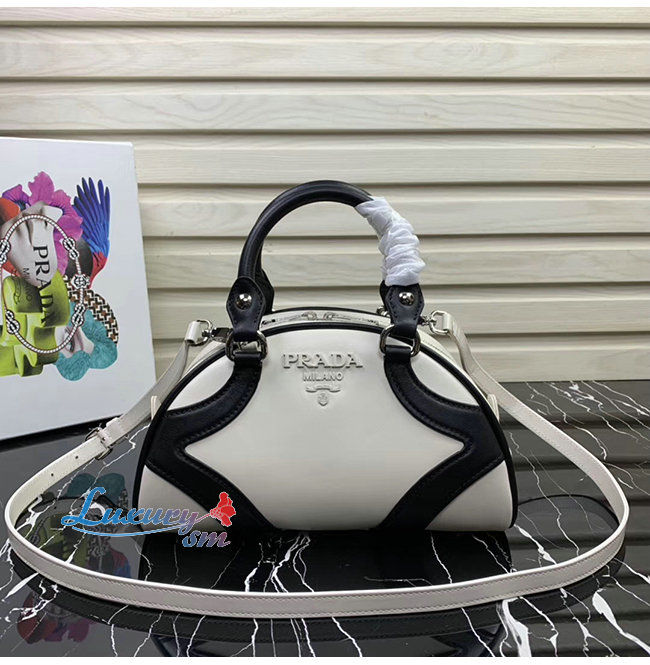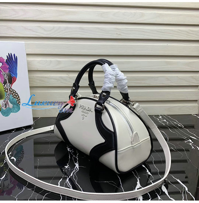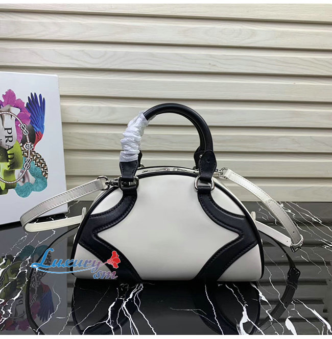[스페셜오더]PRADA-1BB071 프라다 화이트/블랙 송아지 가죽 볼링백