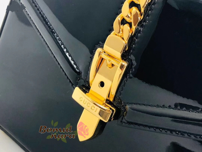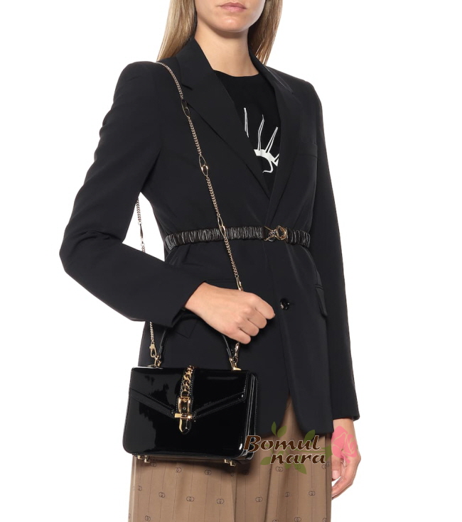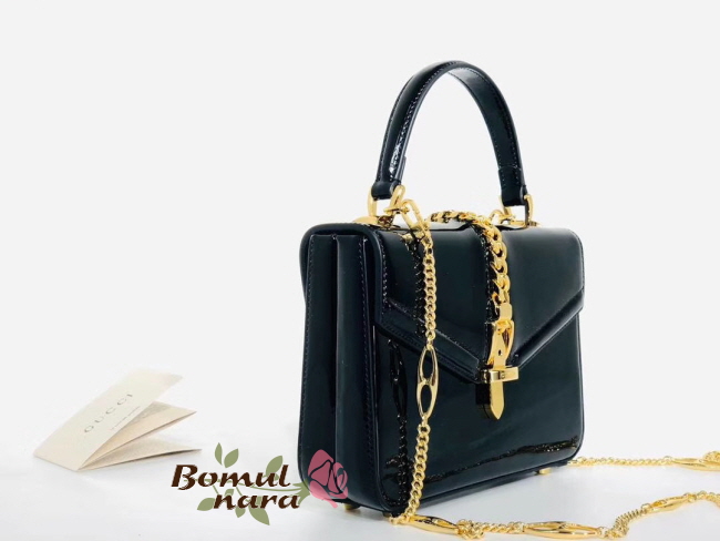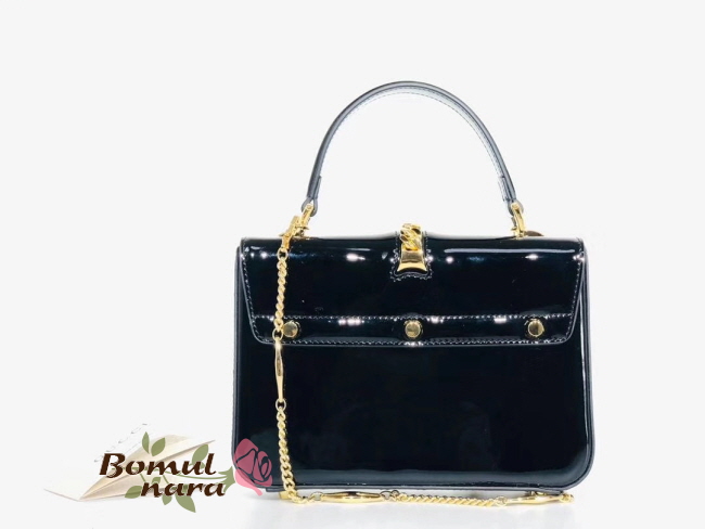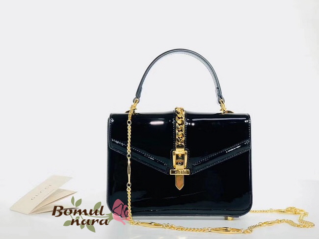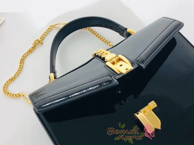 [스페셜오더]GUCCI-589479 1000 구찌 실비 1969 블랙 페이턴트 가죽 미니 탑 핸들백