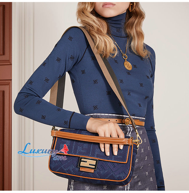 [스페셜오더]FENDI-8BR6008 펜디 송아지 가죽 톤온톤 위브 장식 인디고 바게트 백