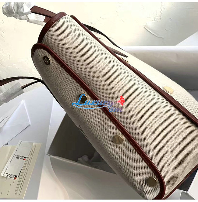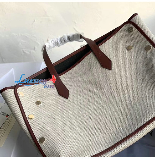 베이지 캔버스 소재의 미디엄 본드 토트배,앞면에