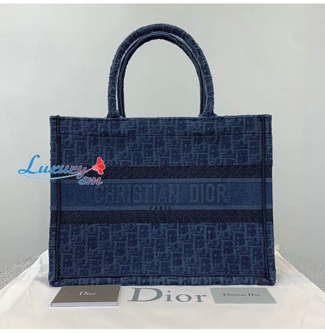 [스페셜오더]DIOR-M1296 디올 블루 DIOR OBLIQUE 자수 데님 캔버스 스몰 DIOR BOOK TOTE 백