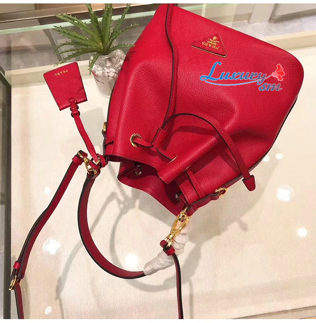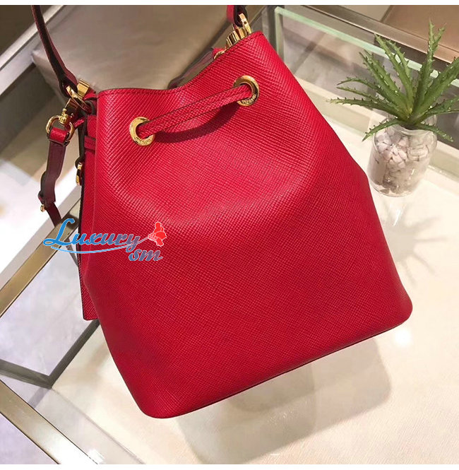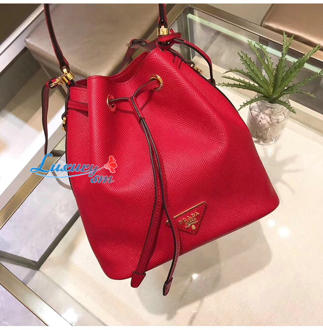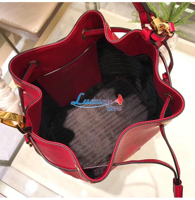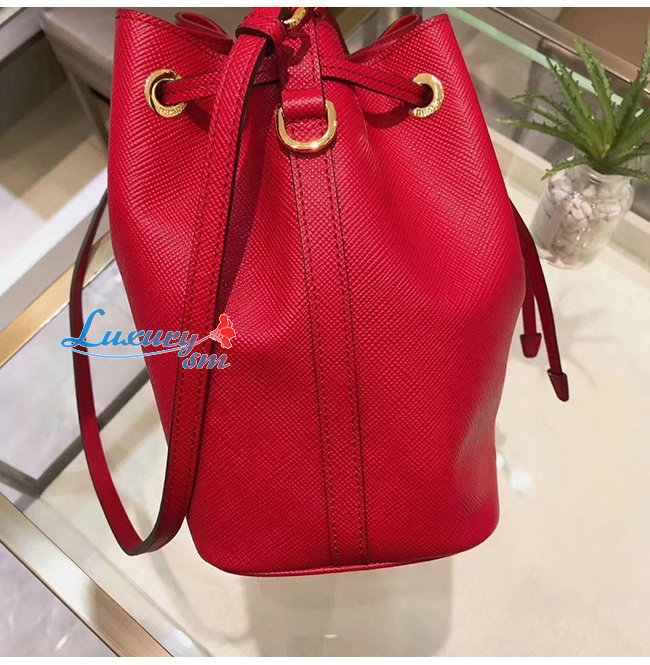 [스페셜오더]PRADA-1BE032 프라다 레드 사피아노 가죽 버킷백