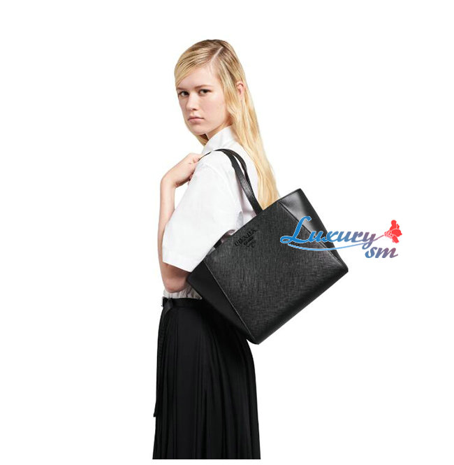 [스페셜오더]PRADA-1BG288 프라다 블랙 사피아노 가죽 토트백