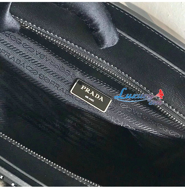 프라다 로고 나일론 안감 앞면의 톤 메탈로고.