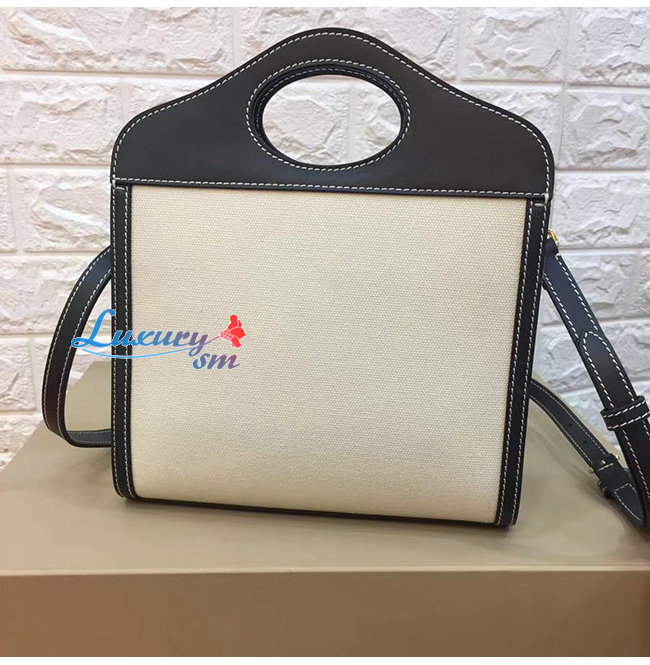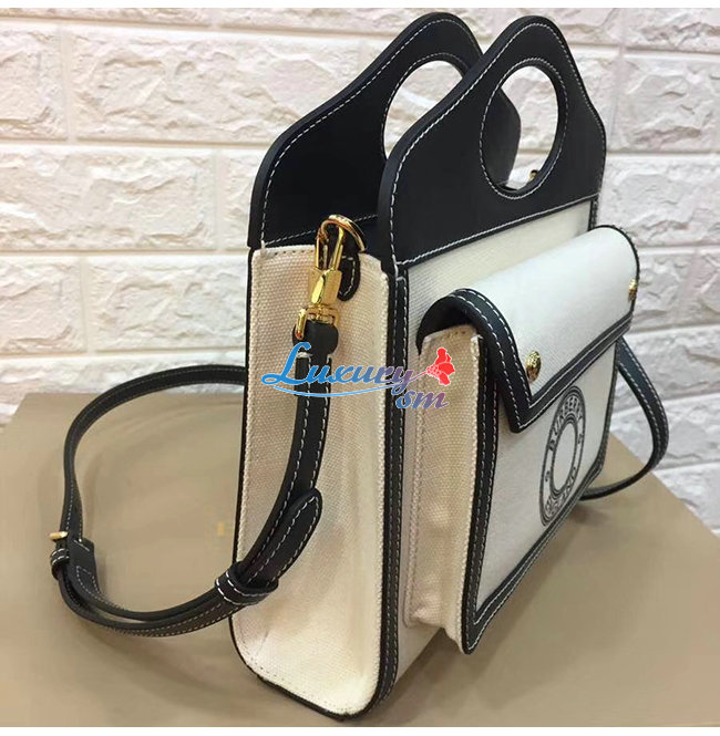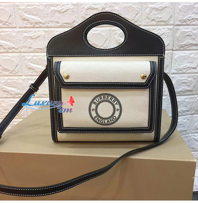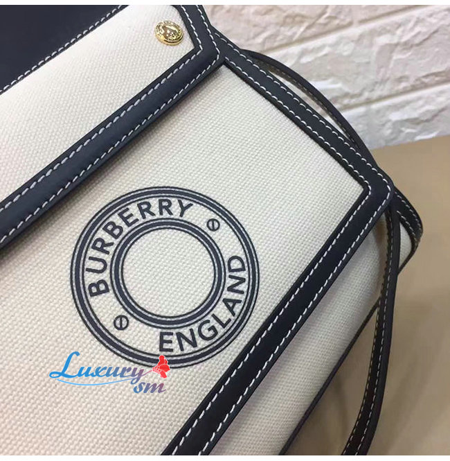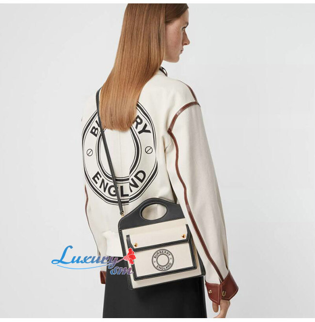 [스페셜오더]BURBERRY-80280581 버버리 탠/화이트 미니 로고 그래픽 캔버스 레더 포켓 백