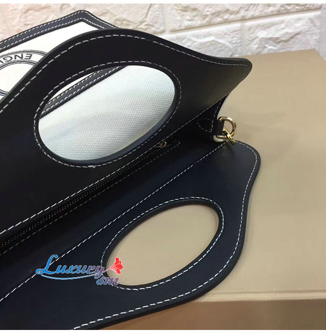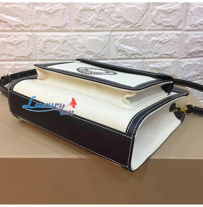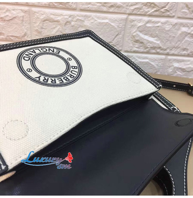 [스페셜오더]BURBERRY-80280581 버버리 블랙/화이트 미니 로고 그래픽 캔버스 레더 포켓 백