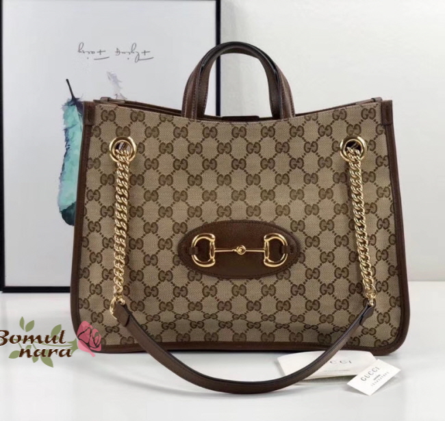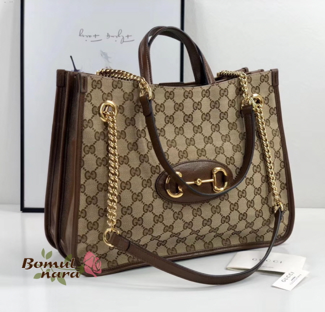 [스페셜오더]GUCCI-621144 8563 구찌 브라운 1955 홀스빗 미디엄 토트백