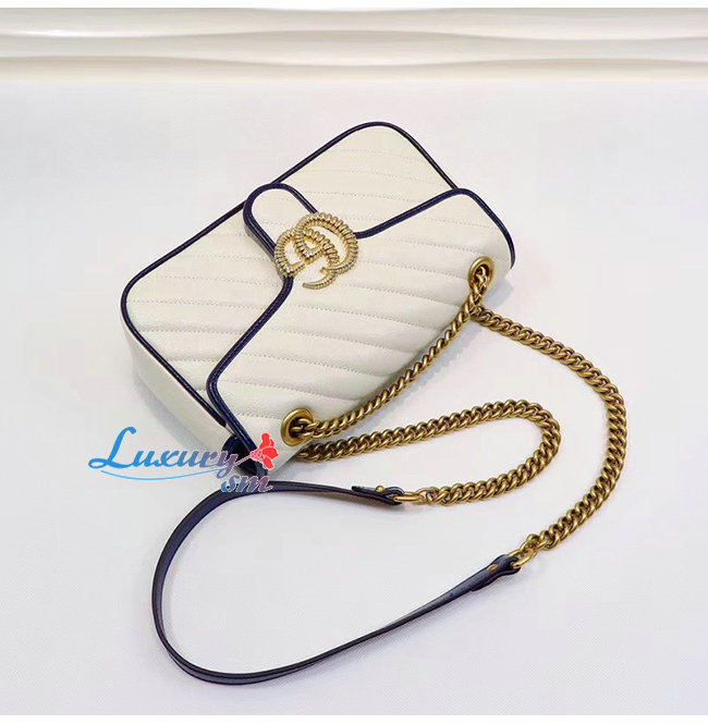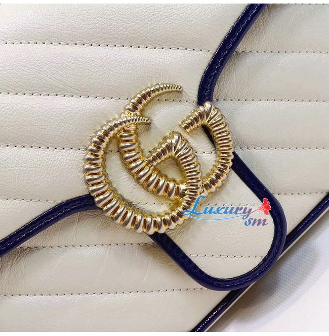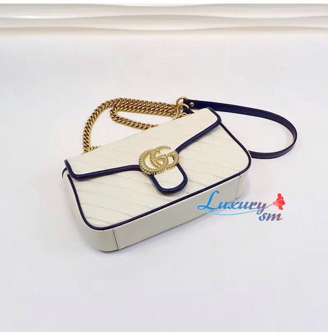 [스페셜오더]GUCCI-443497 9085 구찌 화이트 사선형 마틀라세 퀼트 GG 마몽 스몰 숄더백