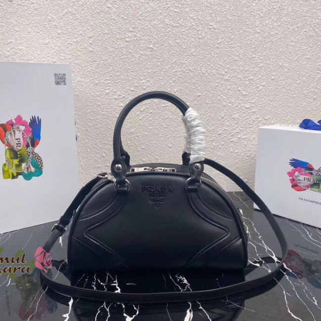 [스페셜오더]PRADA-1BB070 프라다 블랙 레터링 로고 숄더 볼링백