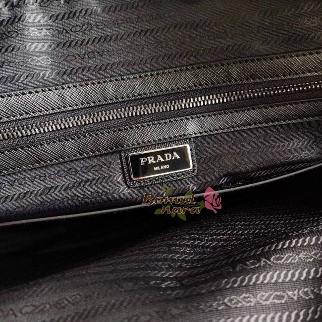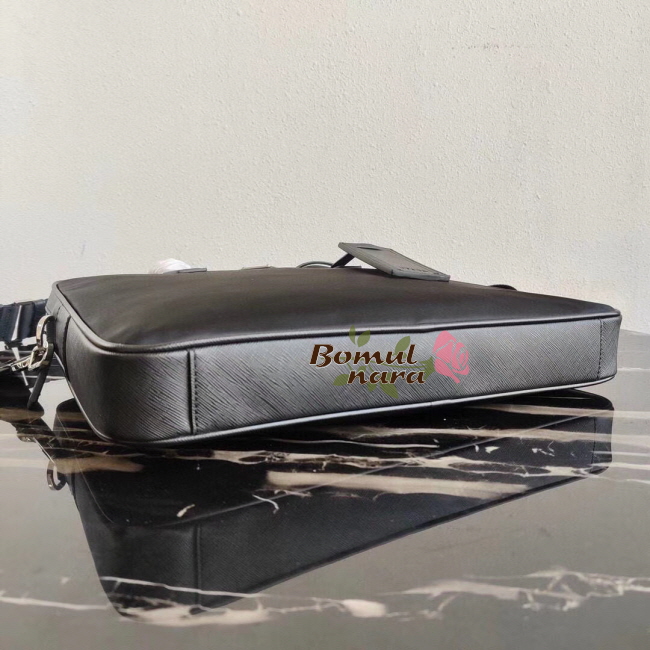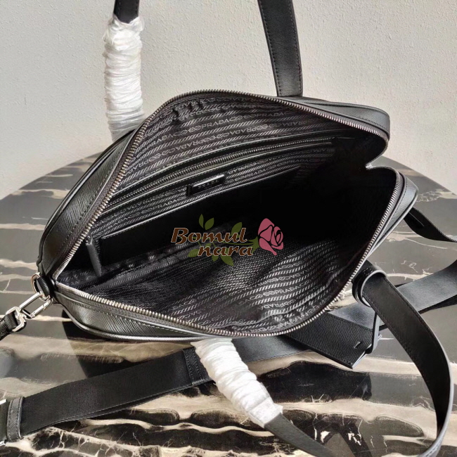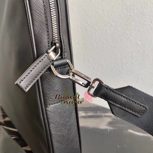 [스페셜오더]PRADA-2VE368 프라다 사피아노 꾸이르 가죽 다크 메탈 로고 블랙 브리프케이스
