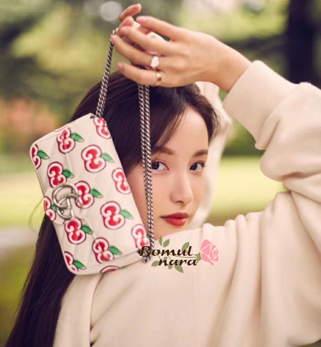 슈퍼 미니백은 은색톤의 더블 G하드웨어 돋보입니다.