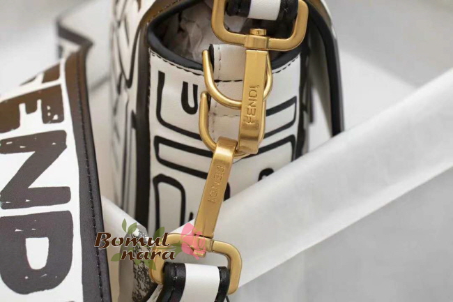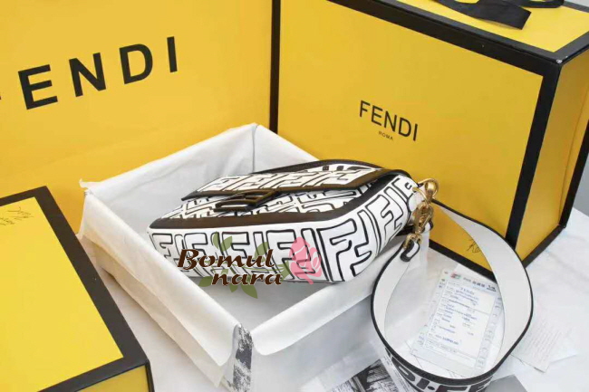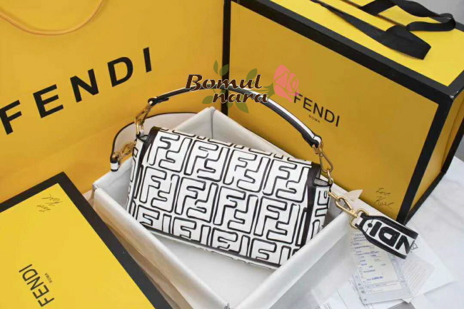 [스페셜오더]FENDI-8BR600 펜디 화이트 FF 모티프 양가죽 미디엄 바게트백