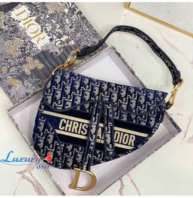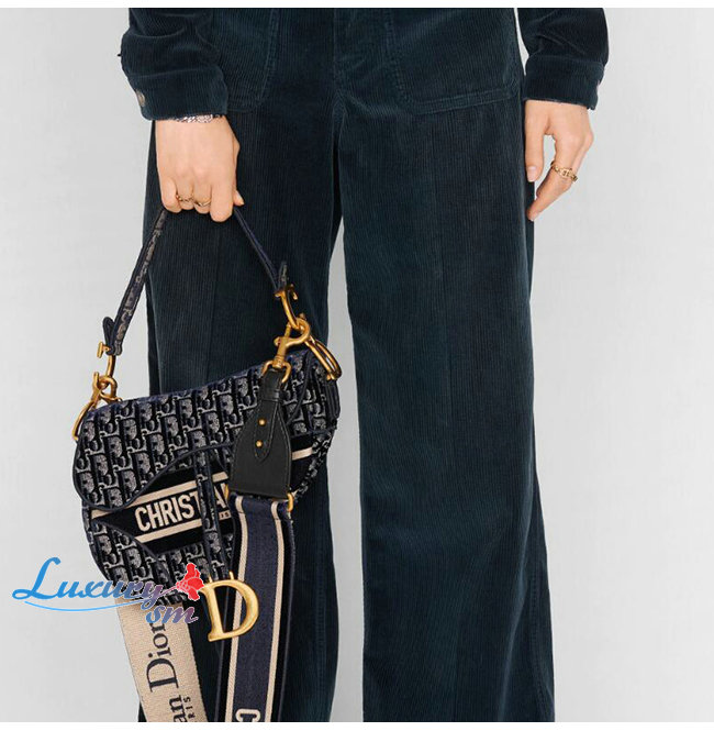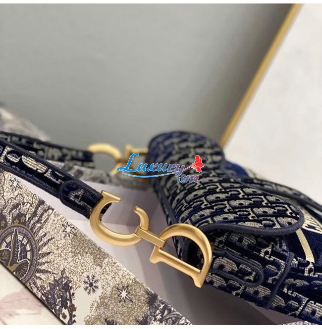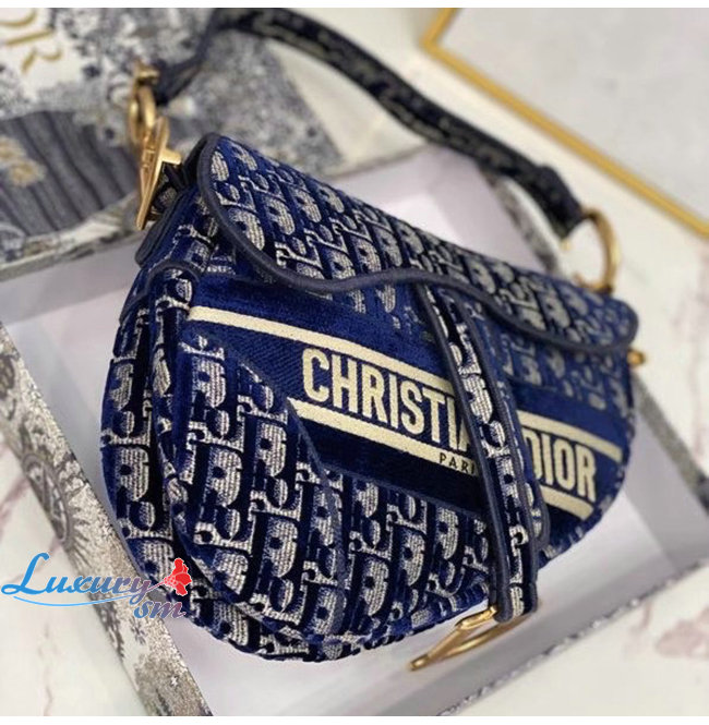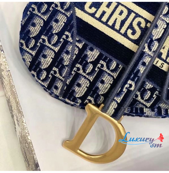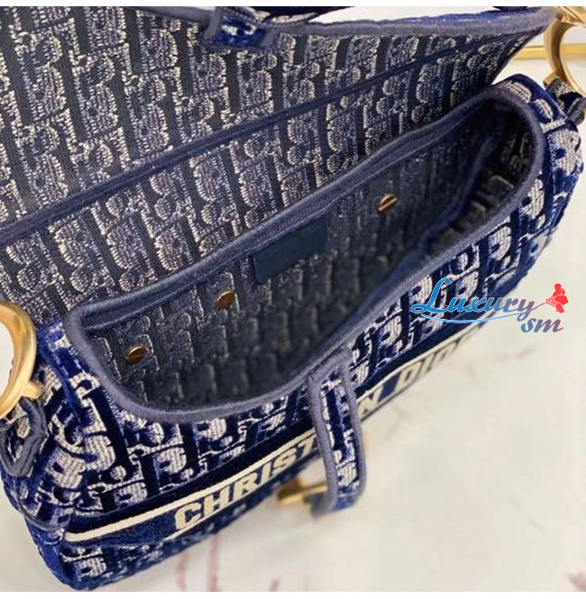 [스페셜오더]DIOR-M0446 디올 블루 Dior Oblique 자수 벨벳 새들백