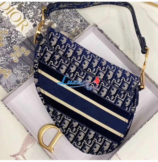 [스페셜오더]DIOR-M0446 디올 블루 Tie & Dior 자수 페브릭 새들백