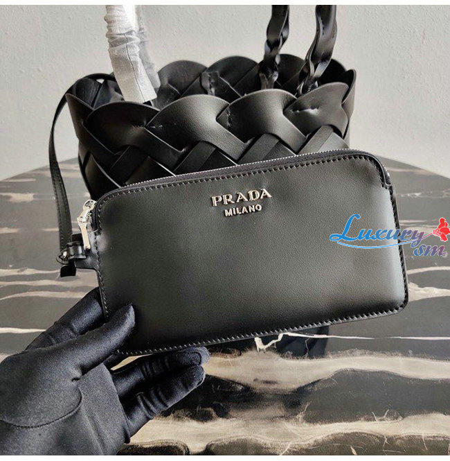 [스페셜오더]PRADA-1BG318 프라다 블랙 송아지 가죽 트레스 토트백