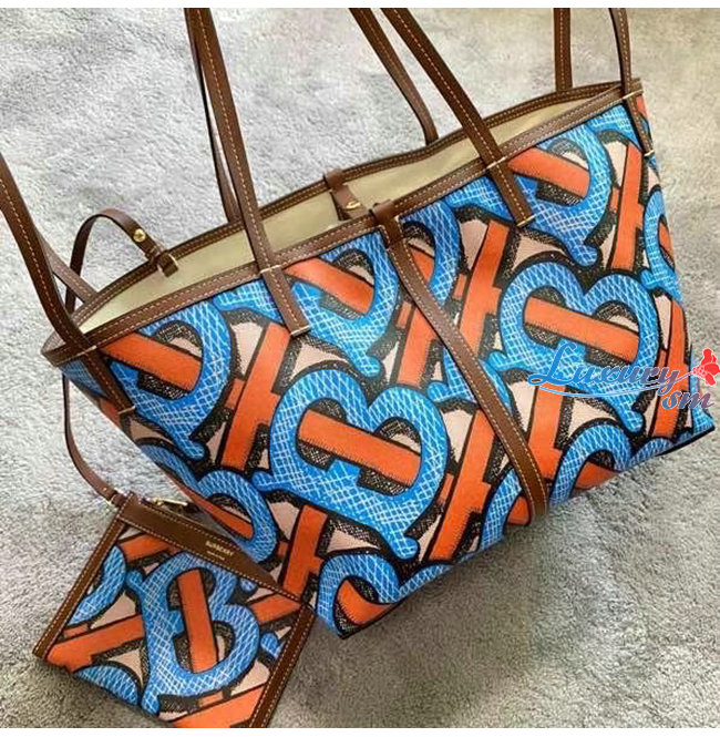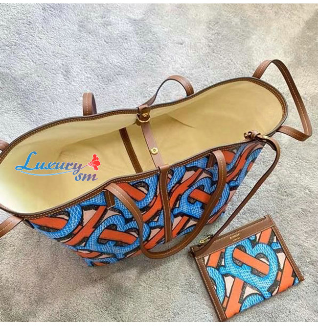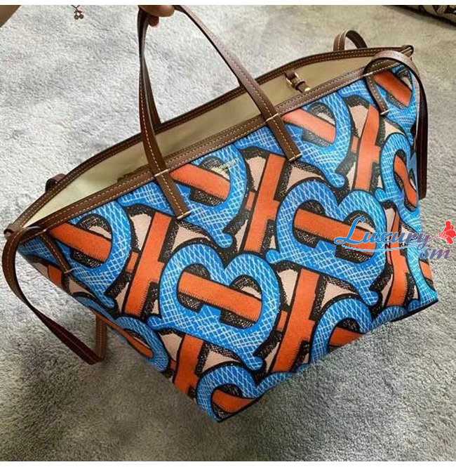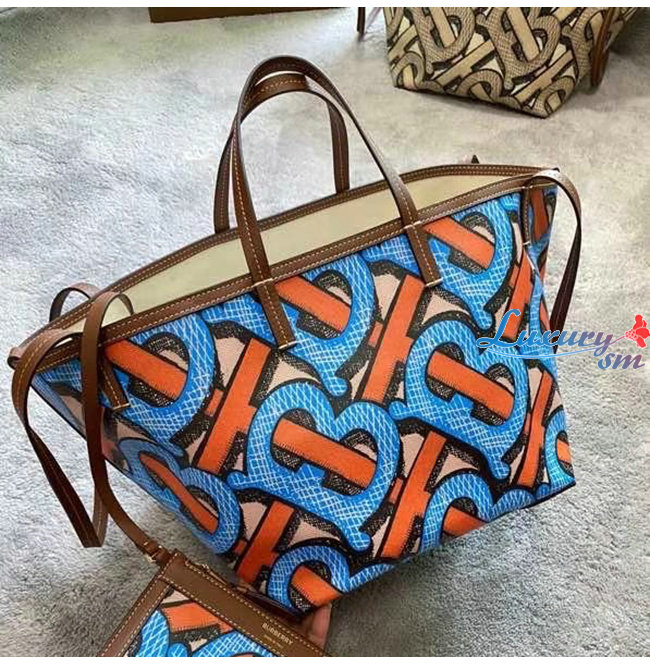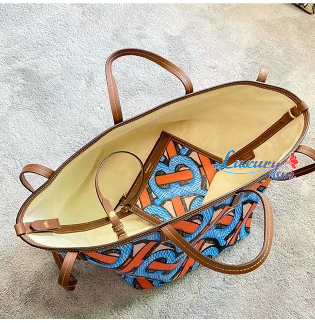 [스페셜오더]BURBERRY-80330231 버버리 브라이트 코발트 미니 모노그램 프린트 E-캔버스 비치 토트