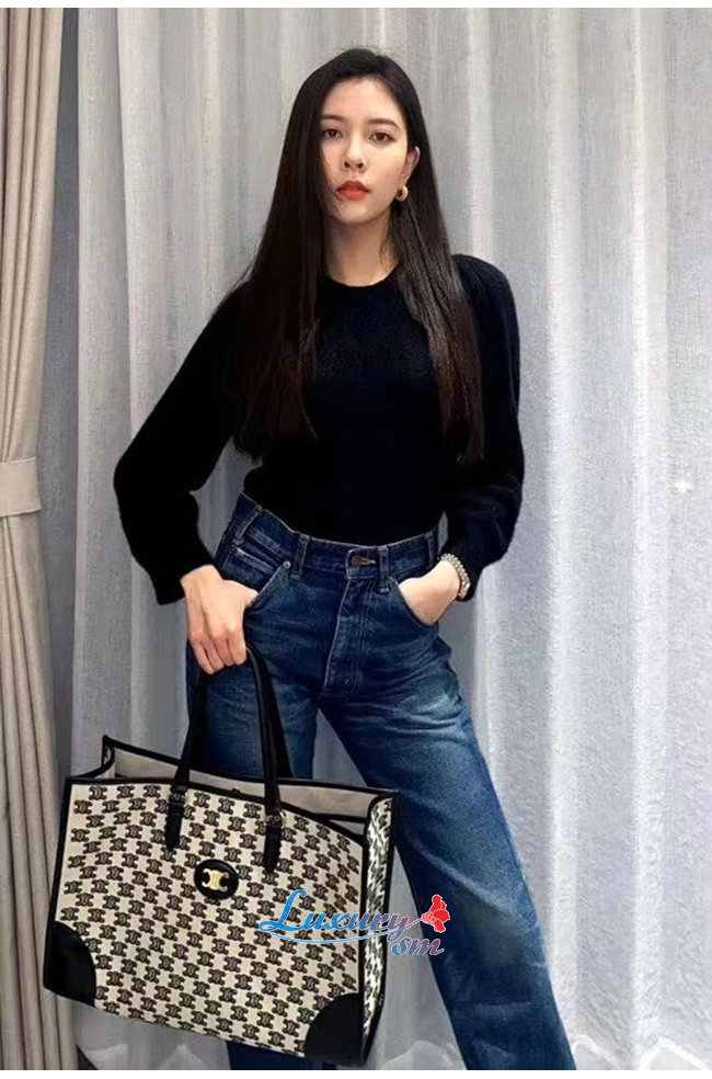 [스페셜오더]CELINE-194342 셀린느 블랙 트리오페 자수 호리즌탈 카바스 토트백