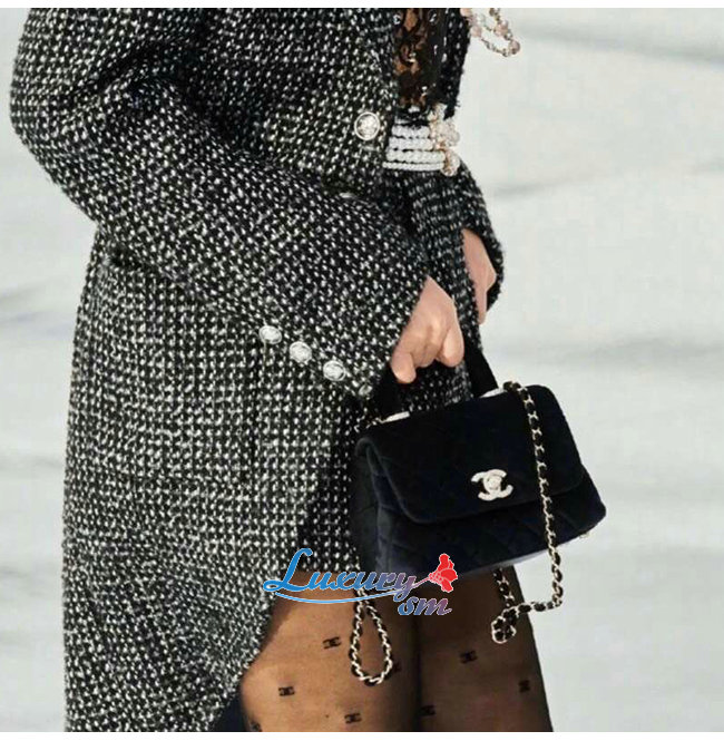 [스페셜오더]CHANEL-AS2215 샤넬 블랙 벨벳 스트라스 실버메탈 핸들 장식 미니 플랩 백