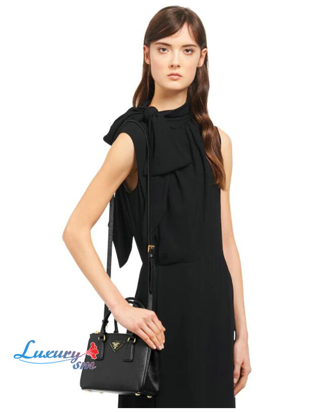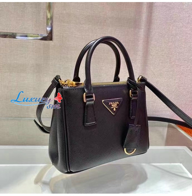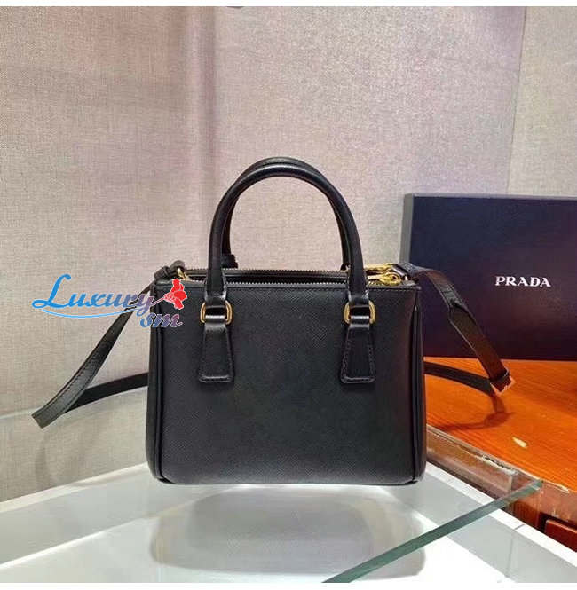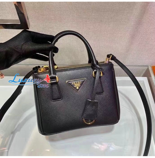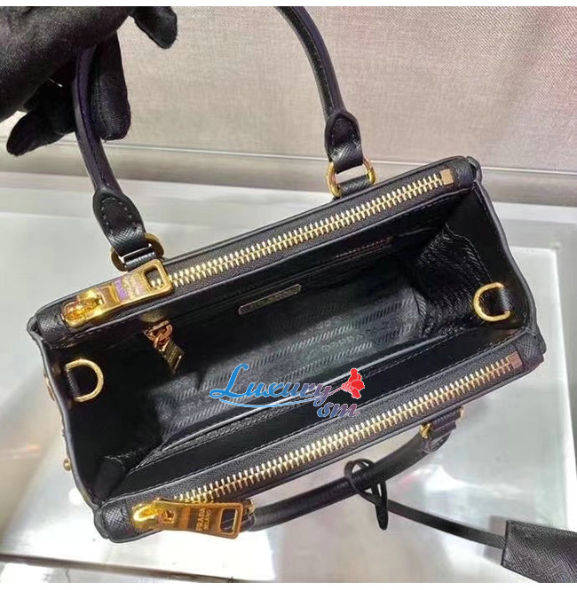 [스페셜오더]PRADA-1BA906 프라다 블랙 사피아노 가죽 마이크로 갤러리아 탑 핸들백