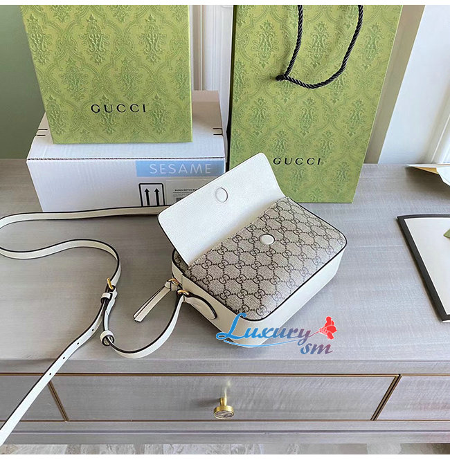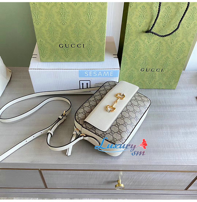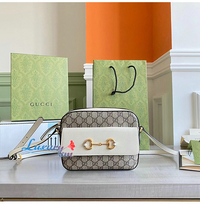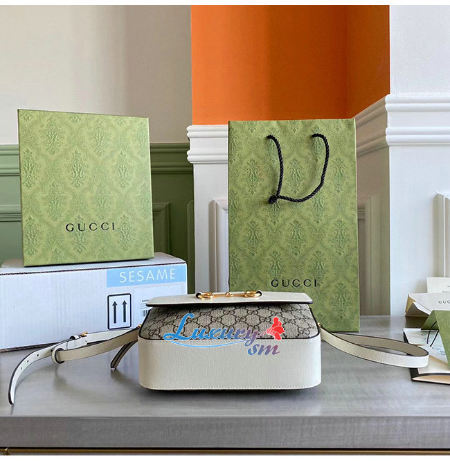 [스페셜오더]GUCCI-645454 9761 구찌 화이트 가죽 GG 수프림 홀스빗 1955 스몰 숄더백