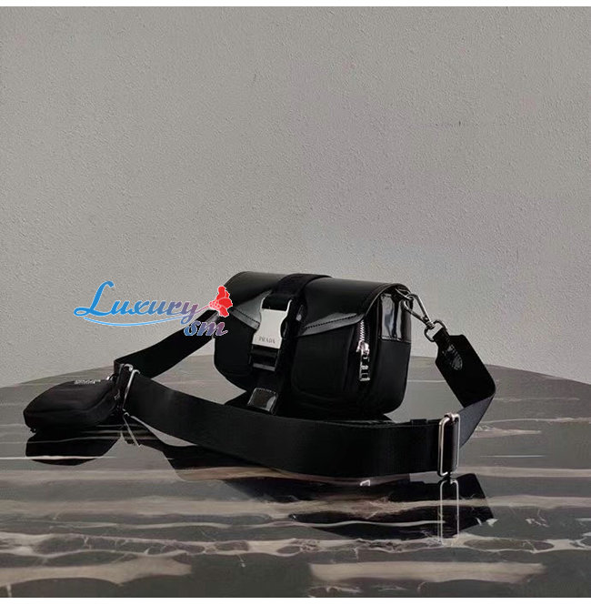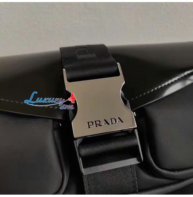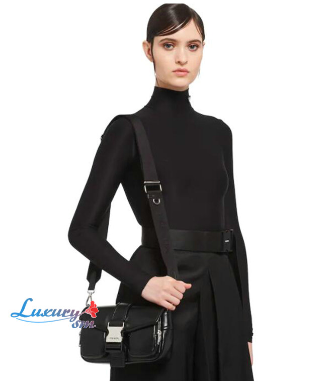 [스페셜오더]PRADA-1BD295 프라다 블랙 나일론 및 브러시드 가죽 숄더 백