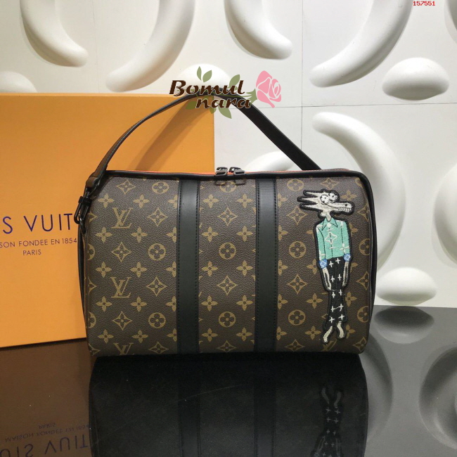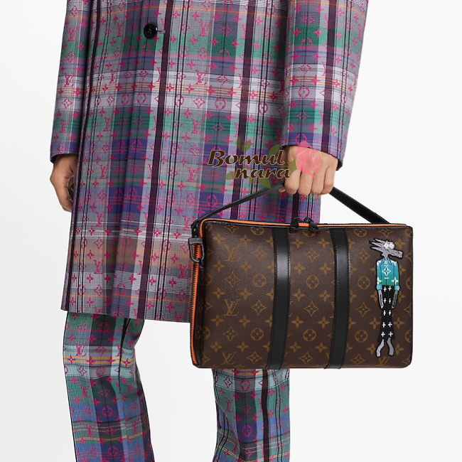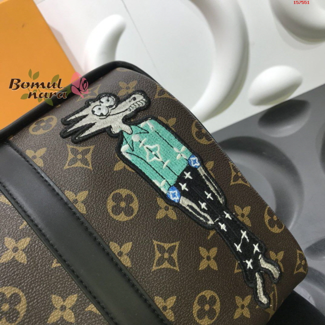 받은 캐릭터 자수 패치를 장식한 모노그램 캔버스 소재의