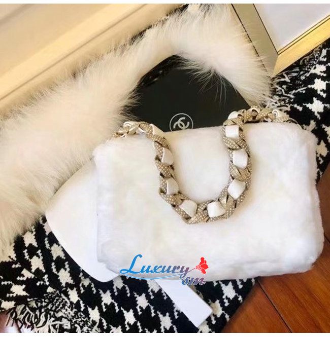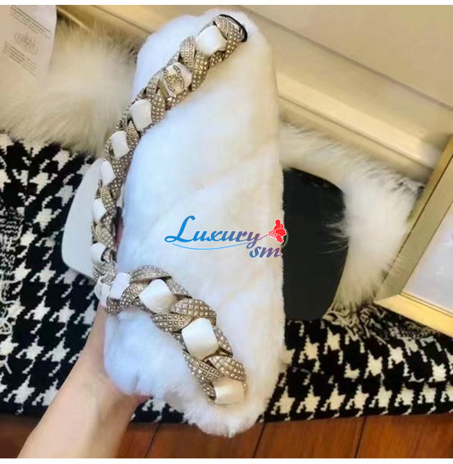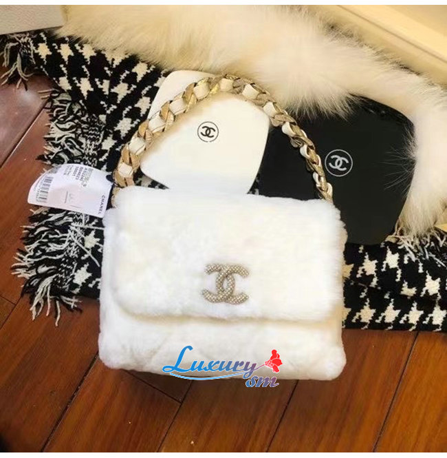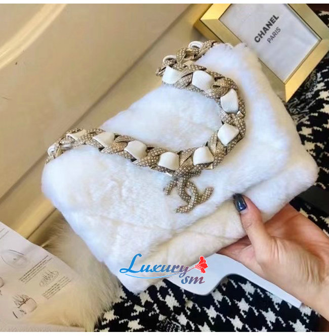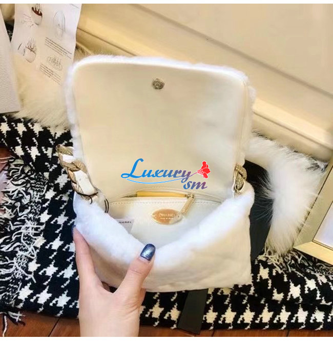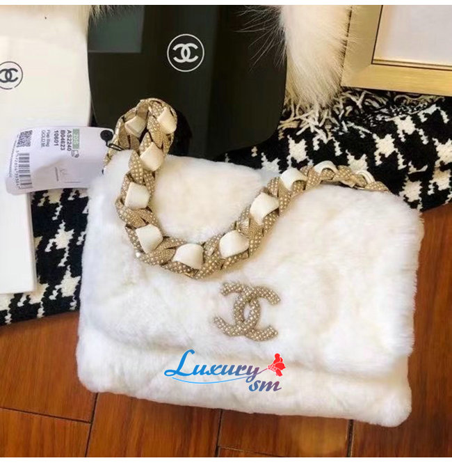 [스페셜오더]CHANEL-AS2240 샤넬 화이트 시어링 램스킨 스트라스 골드 메탈 플랩 백