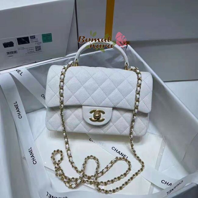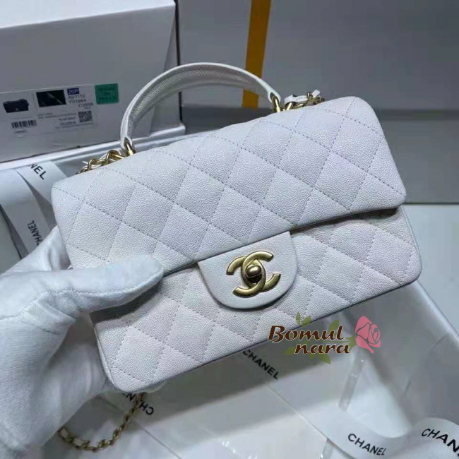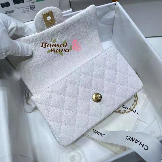 [스페셜오더]CHANEL-AS2431 샤넬 화이트 캐비어 골드 핸들 장식 미니 플랩 백
