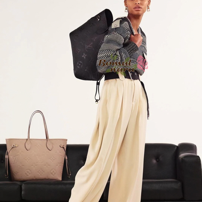 양각 처리한 모노그램 앙프렝뜨 가죽 소재로 새롭게