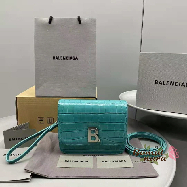 [스페셜오더]BALENCIAGA-6181561 발렌시아가 블루 크로커다일 엠보싱 B. 스몰 숄더백