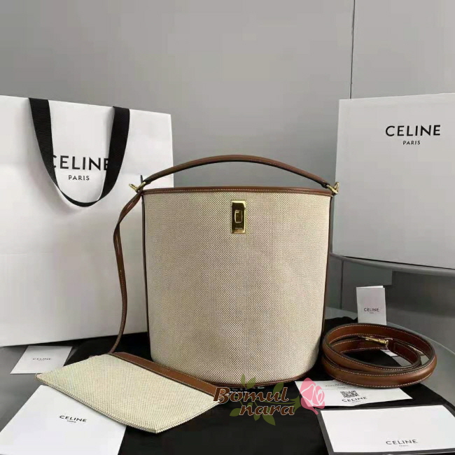[스페셜오더]CELINE-195572 셀린느 화이트&탄 텍스타일 버킷16 숄더백