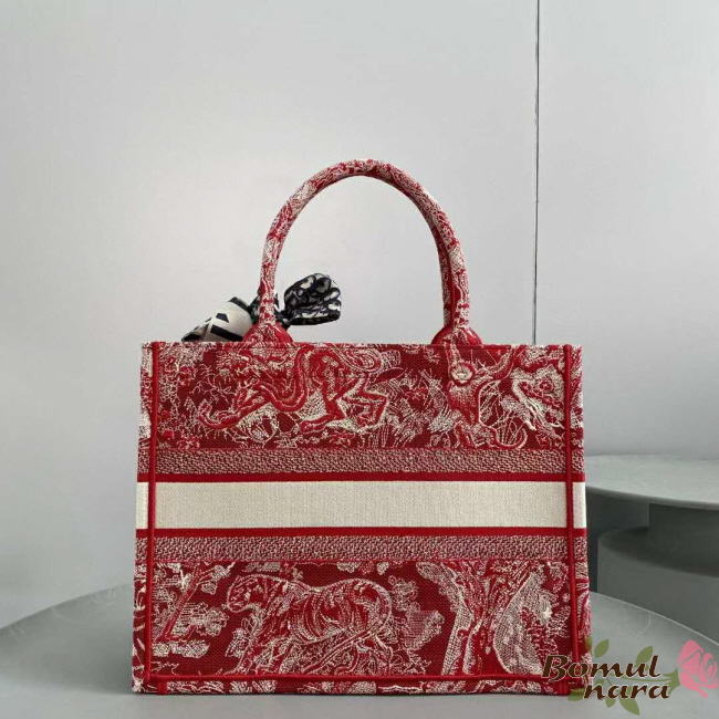 [스페셜오더]DIOR-M1296 디올 버건디 BOOK TOTE DIOR OBLIQUE 자수 스몰 백
