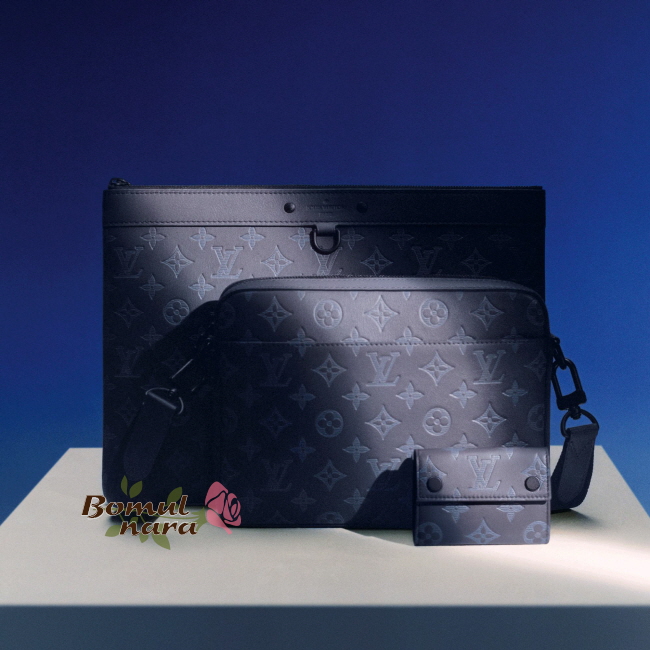 네이비 블루 색조의 모노그램 섀도우가죽 소재로