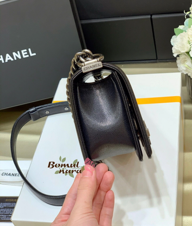 [스페셜오더]CHANEL-A67085 샤넬 블랙 캐비어 루테늄 메탈 스몰 보이 플랩 백
