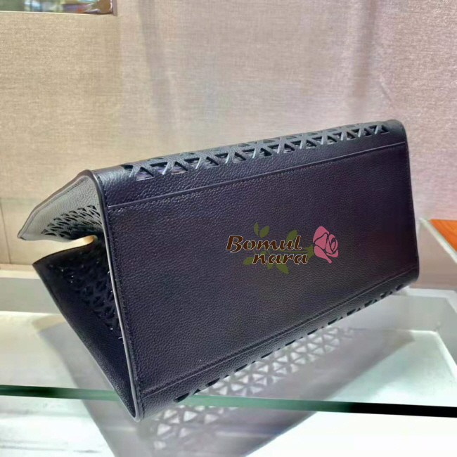 [스페셜오더]PRADA-1BG405 프라다 블랙 트라이앵글 로고 아일릿 탑 핸들 백