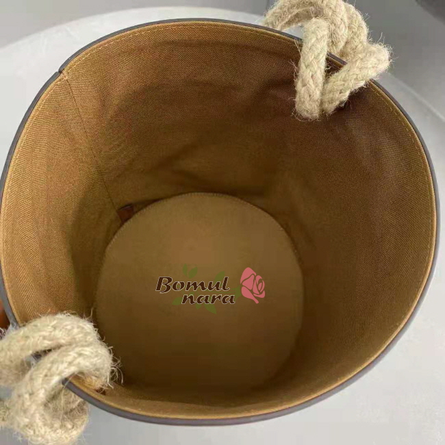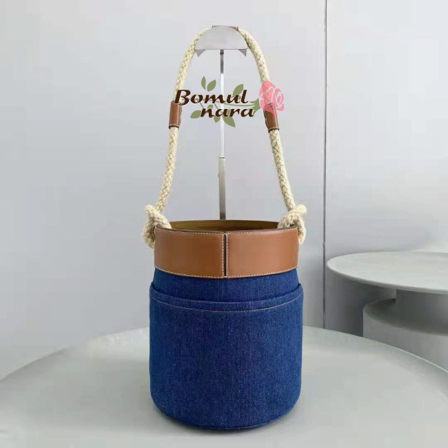 있으며 로프 스트랩 디테일이 돋보이는 버킷백이에요