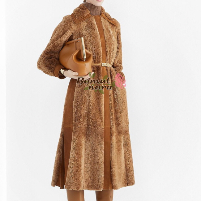캐러멜 컬러 램스킨 가죽 트리밍