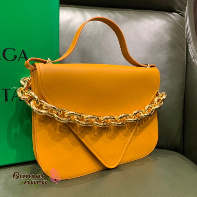 가방 전면의 체인 디테일과 V 쉐입이 특징으로
